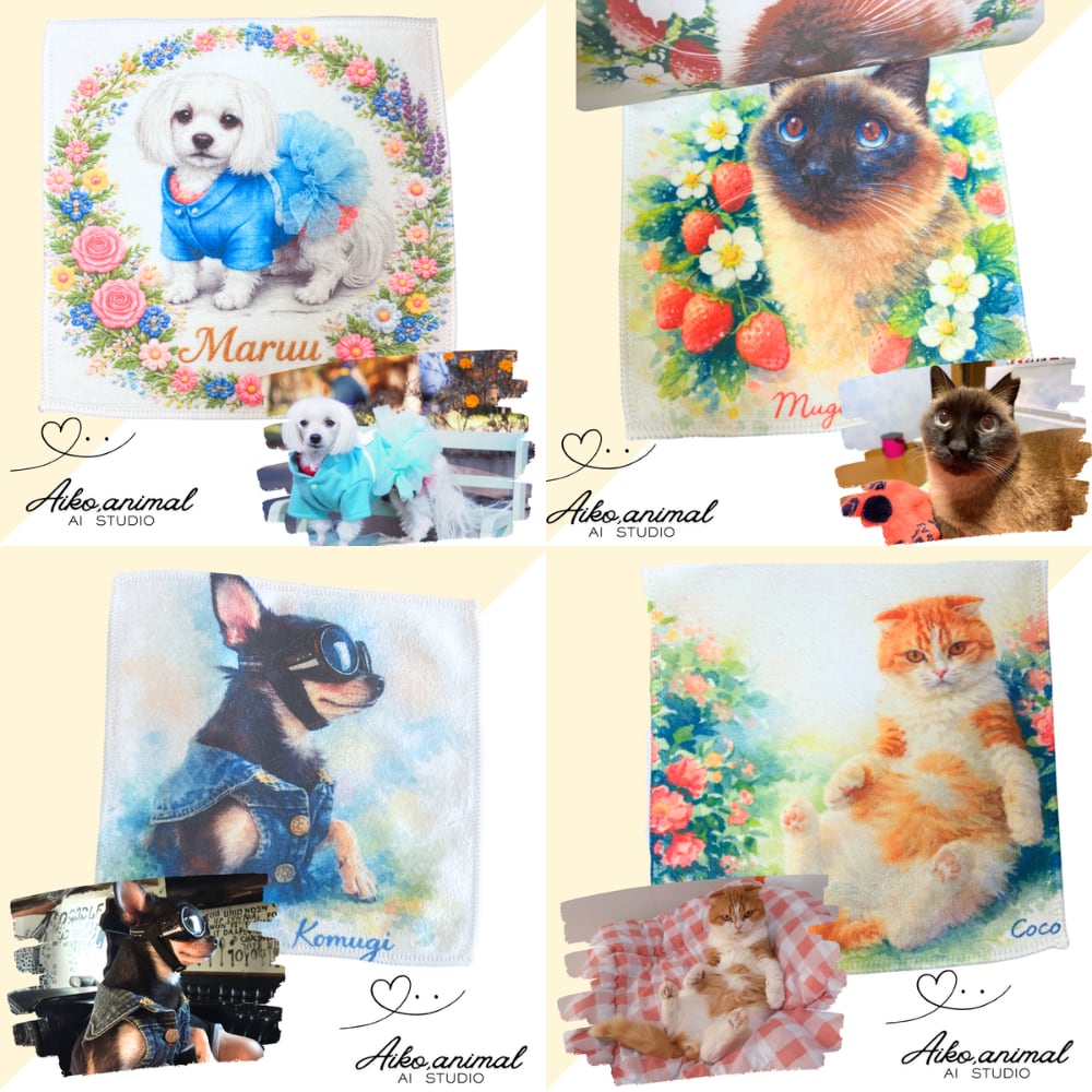 あなたの大切な「うちの子」が、可愛いハンカチになりましたฅ^•ω•^ฅ
